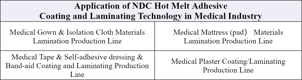 With the development of science and technology, many new functional materials and products come onto the market. NDC, keeping up with marketing demands, cooperated with medical experts and developed a variety of special equipment for the medical industry. Especially at the critical moment when COVID-19 ravages the world in the past three years, NDC provides strong machines to guarantee for manufacturers who produce protective clothing materials in the medical industry. We also obtained high-rated social recognition and praise from many medical enterprises and the government.